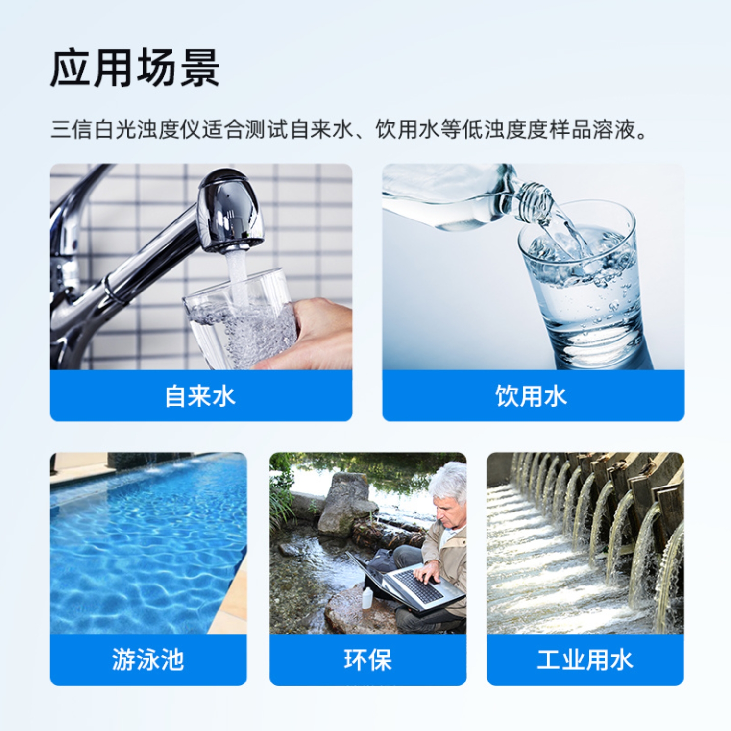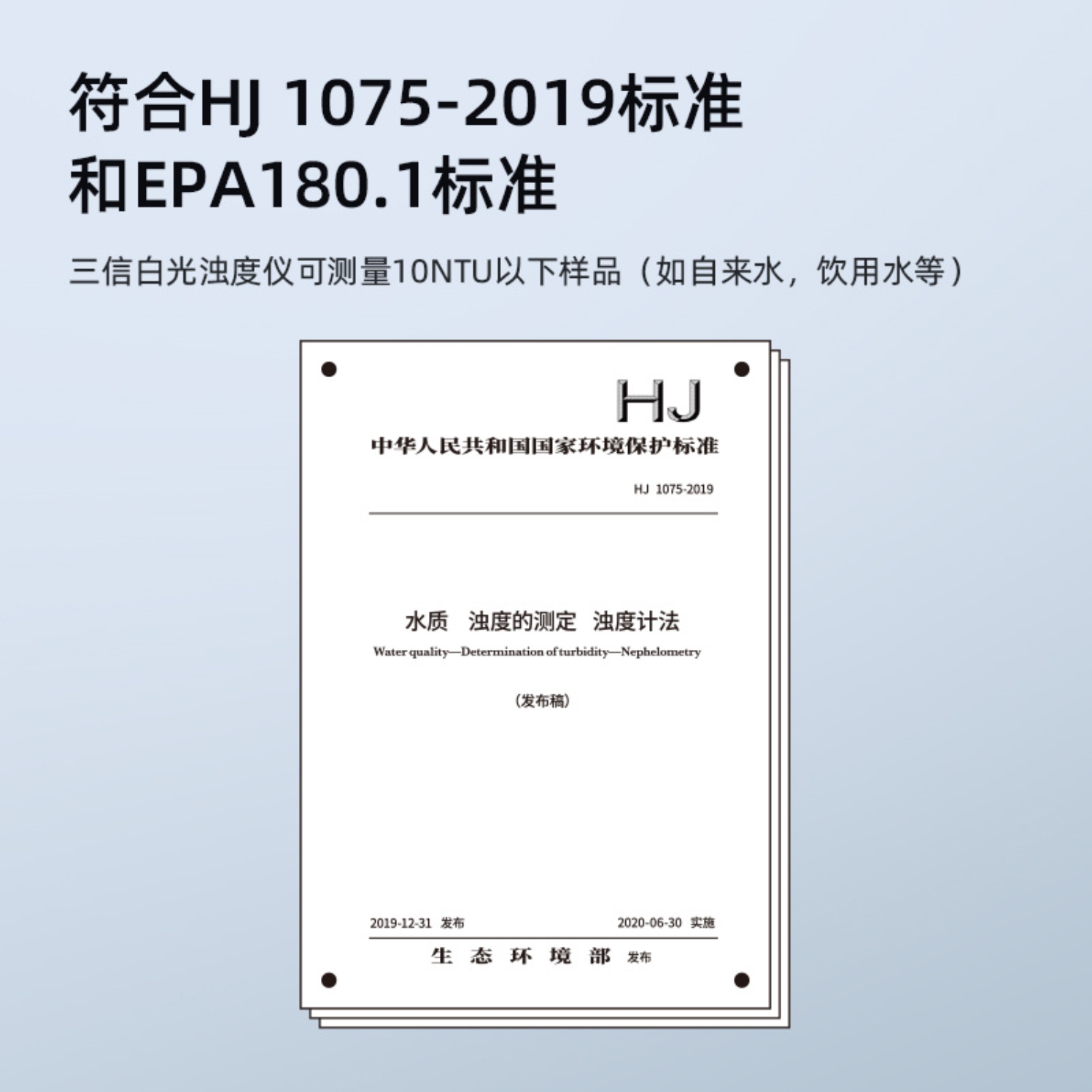 90°散射光測量,符合 HJ 1075-2019、ISO7027 和 DIN27027 標準 |