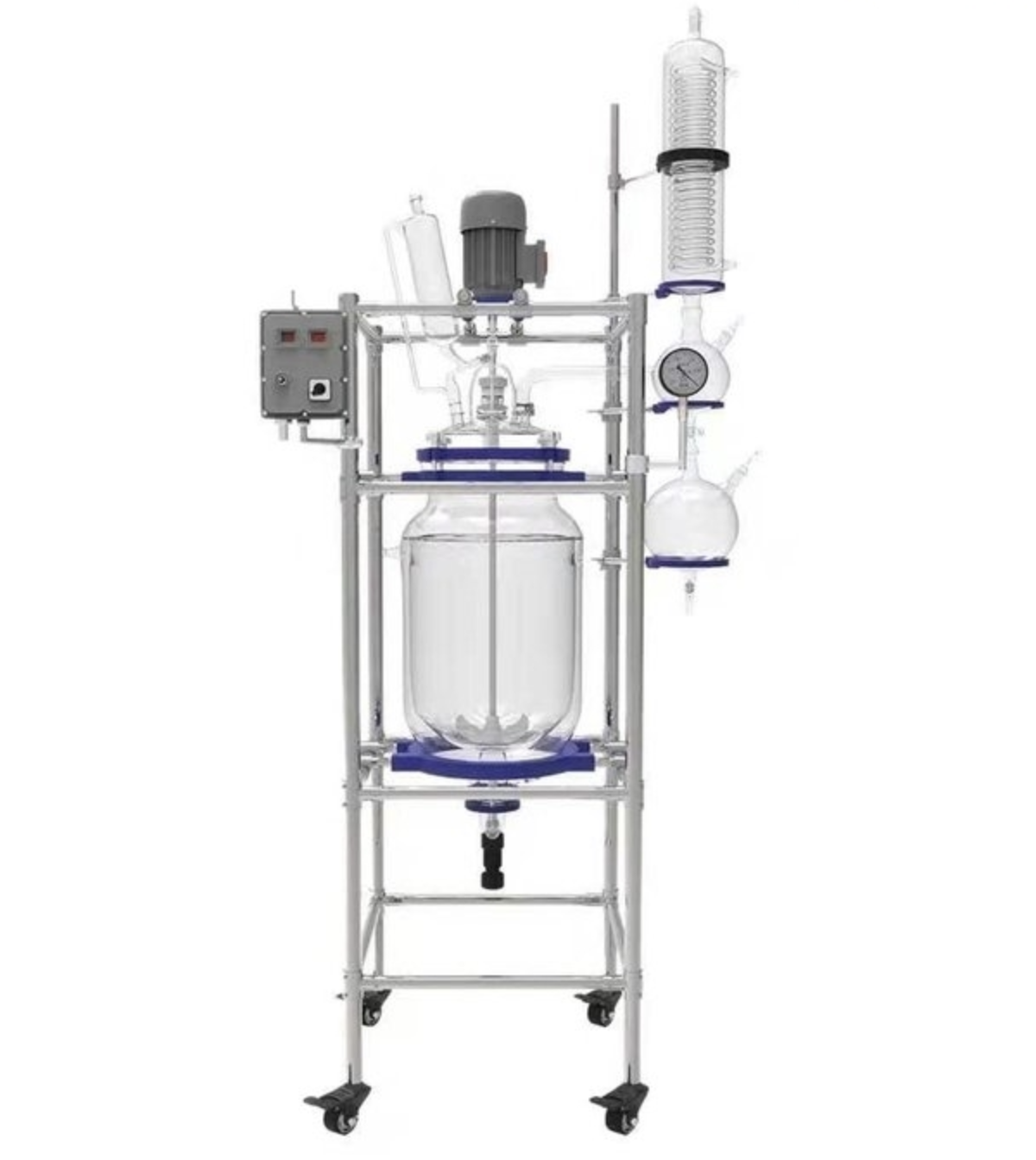 單層玻璃反應釜利用原裝的加熱油水兩用浴鍋,在恒溫條件下進行各種生化反應和合成反應,儀器全系統為封閉狀態,物料在常壓和負壓多種條件下進行氣化、蒸發、冷凝回流、濃縮和提純,一機多用,大容量玻璃反應釜適用于現代化學、精細化工、生物制藥、新材料合成的理想中試、生產系統設備。