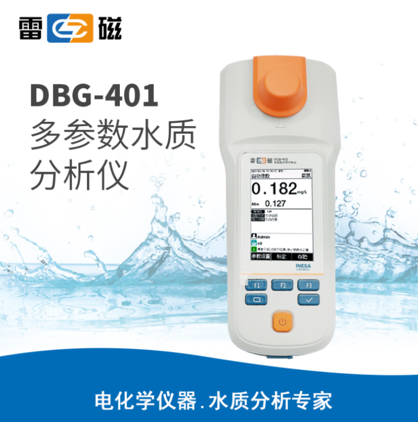 【主要特點】采用420nm、470nm、620nm、650nm四個LED光源,壽命長,精度高內置測量方法:氨氮、高濃度COD,低濃度COD、總磷、總氮采用高清液晶屏,顯示清晰,友好性操作界面支持自動關機、斷電保護和恢復出廠設置等功能支持固件升級功能,允許功能擴展和個性化要求IP65防護等級標配移液槍,消解比色管,便攜式防護箱智能檢測智能判別終點,支持支持自動讀數,連續讀數設定稀釋比,自動計算樣品原始濃度可選內置校準曲線或自定義校準曲線自定儀校準曲線,支持2~6點校準數據管理雷磁DGB-401型多參數水質分析儀【主要特點】采用420nm、470nm、620nm、650nm四個LED光源,壽命長,精度高內置測量方法:氨氮、高濃度COD,低濃度COD、總磷、總氮采用高清液晶屏,顯示清晰,友好性操作界面支持自動關機、斷電保護和恢復出廠設置等功能支持固件升級功能,允許功能擴展和個性化要求IP65防護等級標配移液槍,消解比色管,便攜式防護箱智能檢測智能判別終點,支持支持自動讀數,連續讀數設定稀釋比,自動計算樣品原始濃度可選內置校準曲線或自定義校準曲線自定儀校準曲線,支持2~6點校準數據管理支持數據存儲(各200組,共1000組)、查閱、刪除、傳輸符合GLP,實現數據追溯支持連接標準RS-232串口打印機打印測量結果,打印格式可選具有USB接口,通過專用通信軟件與PC連接,實現數據傳輸電源管理大容量鋰電池供電,支持連接PC和移動電源充電具有電池欠壓提醒功能和充電狀態提醒功能支持背光調節支持數據存儲(各200組,共1000組)、查閱、刪除、傳輸符合GLP,實現數據追溯支持連接標準RS-232串口打印機打印測量結果,打印格式可選具有USB接口,通過專用通信軟件與PC連接,實現數據傳輸電源管理大容量鋰電池供電,支持連接PC和移動電源充電具有電池欠壓提醒功能和充電狀態提醒功能支持背光調節