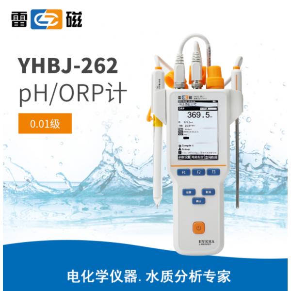 YHBJ-262型便攜式pH/ORP計是一款全新設計的功能型儀器,可廣泛應用于高校、環保、醫藥、食品、衛生、地質探礦、冶金、海洋探測等領域,進行酸雨檢測、工業廢水、地表水、飲用水、飲料、日化產品、紡織品等相關行業的測量,也適用于野外環境的測量。【主要特點】● 全新設計的外形、大屏幕液晶,顯示清晰、美觀;● 儀器具有良好操作界面,全新的UI設計規范;● 支持測量ORP值、mV值、pH值、溫度值;● 支持多種測量模式,包括連續測量模式、平衡測量模式、定時測量模式,支持連續定時或者間隔定時;● 測量支持平衡條件判斷,平衡條件提示;● 允許用戶設置用戶ID、樣品ID;● 儀器支持GLP規范,每個測量結果包含GLP信息;● 支持電極校正,ORP支持1點標定,pH支持1-5點標定;● 具有pH標液組管理功能,自動識別GB、DIN、NIST等多種pH緩沖溶液;● 支持存貯測量結果500套;● 支持多種查閱方式,查閱結果以曲線方式顯示;● 支持IP65防水等級;● 支持連接RS232串口打印機,直接打印測量結果;● 儀器具有USB接口,配合專用的通信軟件,實現與PC的連接;● 儀器支持固件升級功能,允許儀器功能擴展和個性化要求