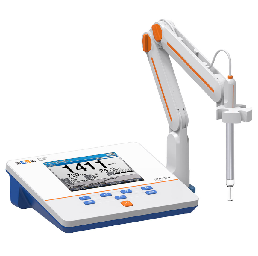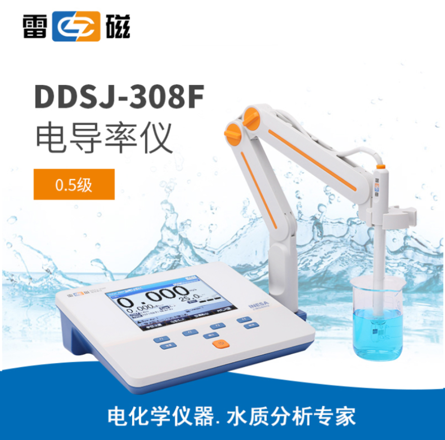 雷磁DDSJ-308F型電導率儀 【主要特點】 ● 采用彩色高清液晶屏幕,顯示清晰 ● 溫度單位可選:℃ 和 °F; ● 參比溫度20℃或25℃可選 ● 支持開機自診斷、自動關機、斷電保護和恢復出廠設置等功能 ● 支持固件升級功能,允許功能擴展和個性化要求 ● 支持IP54防護等級 ● 標配復合電導電極、電極支架、防塵罩和校準溶液 【智能檢測、自動識別】 ● 智能判別終點,支持自動讀數、定時讀數、定時間隔讀數、手動讀數 ● 支持自動/手動溫度補償 ● 自動識別4種GB電導標準溶液,支持1-3點電導電極標定 ● 支持不補償、線性、純水補償等多種電導率補償方式 ● 支持自動頻率切換,配套1.0常數電極可覆蓋全量程測量(20μS/cm以下樣品建議選用0.1常數或者0.01常數電導電極測量) 【數據管理,信息追溯】 ● 支持數據存儲(各500套)、查閱、刪除、傳輸和打印 ● 符合GLP,實現數據追溯 ● 具有RS-232接口,支持連接標準RS-232串口打印機,直接打印測量結果,打印格式可選 ● 具有USB接口,通過專用通信軟件與PC連接,實現數據傳輸