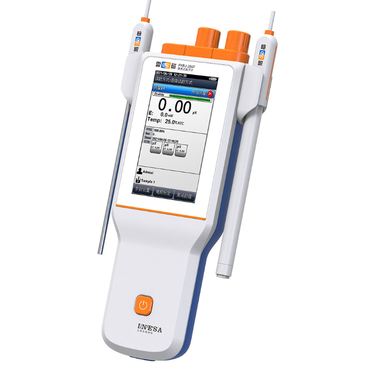 雷磁PXBJ-286F型便攜式離子計 【主要特點】 ● 采用高清彩色液晶觸摸屏,顯示清晰 ●?支持中英文 ●?分辨率可選:pX支持0.01pX和0.1pX,mV支持0.1 mV和1mV ●?溫度單位可選:℃ 和 °F。 ●?支持開機自診斷、自動關機、斷電保護和恢復出廠設置等功能 ●?支持固件升級功能,允許功能擴展和個性化要求 ●?支持IP65防護等級 ●?標配氟離子復合電極、溫度電極、氟離子電極校準溶液、常規濃度總離子強度調節緩沖液 II、電極掛架、硅膠保護套、腕帶、便攜式手提箱 ? 智能檢測、自動識別 ● 智能判別終點,支持自動讀數、定時讀數、定時間隔讀數、手動讀數 ● 支持自動/手動溫度補償 ● 支持1-5點pH電極標定 ● 自動識別GB、DIN、NIST等3組標準緩沖溶液,支持標液組管理,支持自定義pH緩沖溶液和標液組 ● 內置Na+、K+、NH4+、Cl-、F-等多種離子模式,允許用戶自建 ● μg/L、mg/L、g/L、mol/L、mmol/L、PX多種離子濃度單位快速切換 ● 測量模式:直讀濃度法測量、標準添加法測量、樣品添加法測量、GRAN法測量 ? 數據管理,信息追溯 ● 支持數據存儲(各1000套)、查閱、刪除、傳輸和打印 ● 符合GLP,實現數據追溯 ● 支持連接標準RS-232串口打印機打印測量結果,打印格式可選 ● 具有USB接口,通過專用通信軟件與PC連接,實現數據傳輸;支持連接LIMS系統。 ? 電源管理 ● 大容量鋰電池供電,支持連接PC和移動電源充電 ● 具有電池欠壓提醒功能和充電狀態提醒功能 ● 支持背光調節