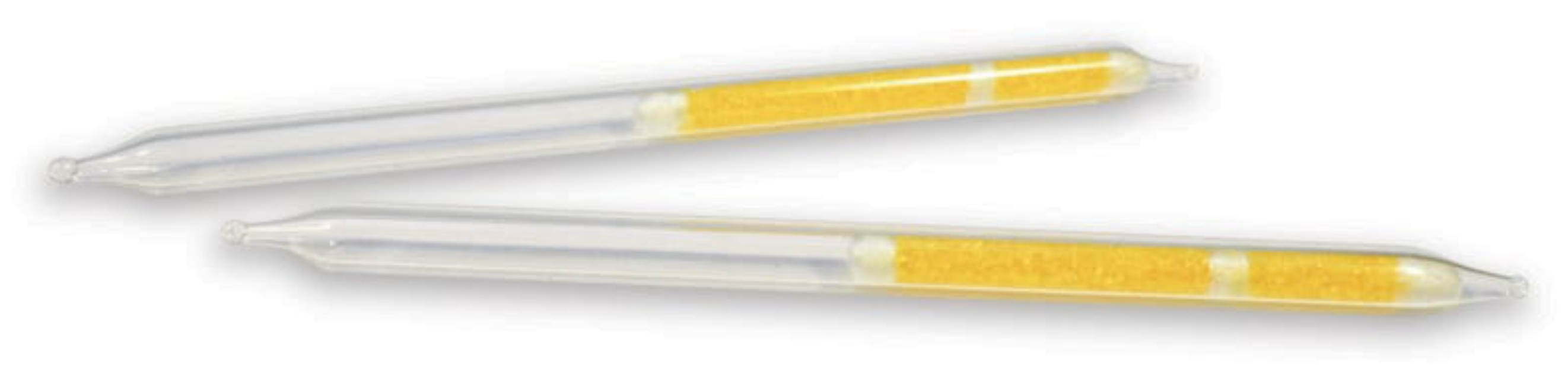 ORBO™ 555 LpDNPH 300/150 mg 吸附劑管(W、W、W 隔板,外徑 × 長度 6 mm × 105 mm)包含兩個相同的選擇性吸附劑床,由玻璃棉或泡沫隔開,用于氣體和蒸汽采樣。管的雙層或雙床結構允許任何樣品突破被較小的備用床捕獲。