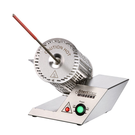 > 由耐磨石英玻璃制成的滅 菌管,可在通電幾分種內到達其工作溫度 900℃,只需要將待滅 菌的接種環插入滅 菌管,5~7 秒就完成滅 菌