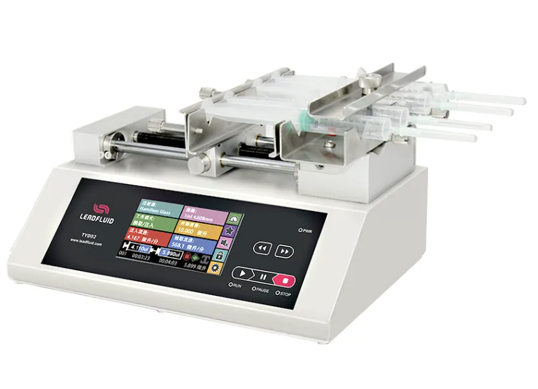 雷弗TYD02-04型實驗室注射泵采用一體化臺式設計,4.3寸高清液晶觸摸屏顯示及操作,可裝卡4支塑料注射器或玻璃進樣針,注射器容量范圍寬至10μL~10mL,流量范圍0.184nL/min~24.520mL/min;