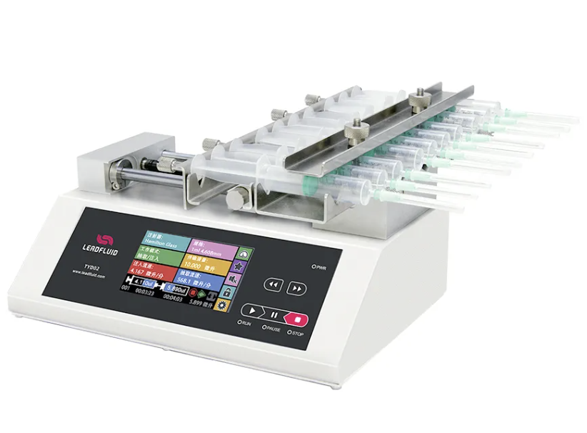 采用一體化臺式設計,4.3寸高清液晶觸摸屏顯示及操作,可裝卡4支塑料注射器或玻璃進樣針,注射器容量范圍寬至10μL~10mL,流量范圍0.184nL/min~24.520mL/min;