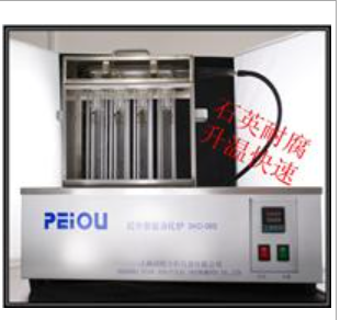1. 石英結(jié)構(gòu)加熱原理遠紅外石英加熱元件采用我廠自己生產(chǎn)的珠光乳白石英管配用電熱材料,使原件具有優(yōu)良可靠的遠紅外輻射特性,通電后,熱材料發(fā)出的紅外光與可見光中97%被乳白管所阻擋吸收使管壁溫度升高產(chǎn)生硅氧鍵分子振動輻射遠紅外線,這樣使97%可見光和近紅外光可轉(zhuǎn)為遠紅外輻射。克服了單純使用透明石英玻璃帶來的透過可見和近紅外的弊端,從而有效地使電能轉(zhuǎn)化為遠紅外線。2. 紅外智能8孔自動消化爐特點遠紅外石英加熱元件是以乳白石英管為紅外輻射源, 沒有涂層,沒有污染,沒有有害輻射,化學穩(wěn)定性好,耐高 溫, 形狀多樣,長久使用不變形,熱穩(wěn)定性好,加熱溫度可行選擇。 長期使用輻射性能不退變。并且使用壽命長,結(jié)構(gòu)合理,熱慣性極小,使用方便。紅外智能8孔自動消化爐快速、 一致、 **一、紅外智能8孔消化爐概述:SKD-08S紅外智能8孔消化爐可用于農(nóng)業(yè)、林業(yè)、環(huán)保、地質(zhì)、化工、食品等部門以及高等院校、科研部門對植株、種子、飼料、食品、土壤、礦石等消化二、紅外智能8孔消化爐技術(shù)指標:型號 SKD-08S ( SKD-08S2)控制方式 數(shù)控 (定時+60階程序升溫)加熱方式 紅外石英加熱管爐孔數(shù)量 8孔控溫范圍 室溫-680℃升溫速度 10分鐘(400℃預熱)溫度波動 ±1% 度電 壓 AC220V功 率 1600W四、紅外智能8孔消化爐特點:1、 加熱體(模塊)采用紅外石英管,耐強酸強堿、防爆裂,壽命長,符合CE標準2、 爐孔溫度連續(xù)可調(diào),升溫速度快,使用范圍廣3、 消化管受熱面積大、溫差小,樣品消化一致性好,熱效率高,有利于樣品的消煮4、 儀器具有過流保護和漏電保護5、 采用雙開關(guān),電源和加熱單獨控制,便于**參數(shù)設(shè)置,節(jié)約能源。6、 采用新一代數(shù)顯控溫儀,PID智能控制技術(shù),控溫精度高,簡單易學7、 儀器有不銹鋼排污罩,使消化管內(nèi)逸出的SO2等有害氣體,通過排污管經(jīng)抽吸泵從水中排入下水道,有效地抑制有害氣體的外逸消化爐熱傳導介質(zhì)對消化質(zhì)量的影響消化爐在實驗室里是一個耗能大戶,且又決定了定氮的質(zhì)量,一個鋁錠或石墨20孔的消化爐功率一般都在3500W左右,(沛歐石英輻射消化爐功率2200W)且工作一般都在二個小時以上。如何降低耗能而又滿足消化的要**選擇消化爐的要考慮的。目前國內(nèi)市場上供應(yīng)的消化爐加熱均通過電加熱,而熱傳導通過介質(zhì)到消化管,所以不同的介質(zhì)對消化爐的品質(zhì)和能耗有直接關(guān)系,在此討論不同的介質(zhì)特性,(假設(shè)消化爐保溫性都是良好的)。1 鋁錠為介質(zhì)優(yōu)點:鋁錠熱傳導較快(導熱系數(shù)可達237W/mK),導熱系數(shù)高使得樣品間溫差較小。如果有足夠體積的鋁錠,就能保障樣品溫度的穩(wěn)定性減小溫度波動,且即便和硫酸接觸便生成密致的硫酸鋁層,不會深入鋁錠內(nèi)部,所以鋁錠也是很好的防腐的選擇。缺點:鋁錠是通過熱的接觸傳導,要溫度恒定必須有足夠大的體積(薄薄一片鋁錠效果較差)電加熱產(chǎn)生的可見光和近紅外光都沒有利用,所以熱能利用效率低,能耗較高。由于鋁錠的穩(wěn)定性和樣品間溫差較小。受到市場的認可。(加熱方式和鋁錠的大小都會影響消化爐的質(zhì)量,在此不做討論)2 石墨為介質(zhì)紅外智能8孔自動消化爐優(yōu)點:同體積鋁錠價格是石墨的3倍,所以石墨消化爐成本低得明顯。缺點:由于石墨非金屬特性即熱傳導慢(導熱系數(shù)只有129W/m.k,比鋁錠237W/m.k低多了。),且石墨導熱系數(shù)隨溫度升高而降低,更使得介質(zhì)上面的消化管溫度不一,溫差大,容易掛壁,影響消化質(zhì)量。所以石墨一般在200度以下作為傳導介質(zhì)尚可,畢竟有價格優(yōu)勢,400度以上石墨導熱系數(shù)明顯下降,石墨的缺點明顯顯現(xiàn)。價格優(yōu)勢的代價是消化質(zhì)量明顯下降,掛壁嚴重。3 紅外石英輻射加熱石英加熱元件采用珠光乳白石英管配用電熱材料,具有優(yōu)良可靠的遠紅外輻射特性,通電后,電阻絲發(fā)出的紅外光波與可見光波中97%被乳白管所阻擋吸收,使石英管壁溫度升高產(chǎn)生硅氧鍵分子振動輻射出遠紅外光波,這樣使97%可見光和近紅外光可轉(zhuǎn)為遠紅外輻射。克服了單純使用透明石英玻璃帶來的透過可見和近紅外的弊端,從而有效地使電能轉(zhuǎn)化為遠紅外光波。靠熱輻射來加熱樣品,特點是:升溫快,樣品間溫差小、傳導極快,溫控準確。一般應(yīng)用于有高要求樣品的消化,例:牛奶、食品、飼料、保健品等容易掛壁的樣品。例如:有較快的升溫和降溫速度。程序升溫可以根據(jù)樣品的特點來選擇升溫曲線,有利高質(zhì)量樣品的消化,從而杜絕樣品的掛壁現(xiàn)象、進而使得樣品消化效率的大大提高,優(yōu)點:樣品間溫差小,由于采用熱輻射使得消化管間溫差變小。溫度控制性能優(yōu)良:由于石英輻射熱慣性小,在溫控時溫度超調(diào)小,能使爐溫盡快達到目的溫度,這是鋁錠和石墨介質(zhì)無法媲美的。減低能耗:由于鋁錠和石墨通過接觸傳導,且大量的可見和近紅外光不能利用,使得能量浪費,而石英輻射利用了97%的可見和近紅外光波轉(zhuǎn)換成遠紅外光波輻射,電、熱能轉(zhuǎn)換效率高。紅外智能8孔自動消化爐由于石英化學特性穩(wěn)定,即便和硫酸接觸不會影