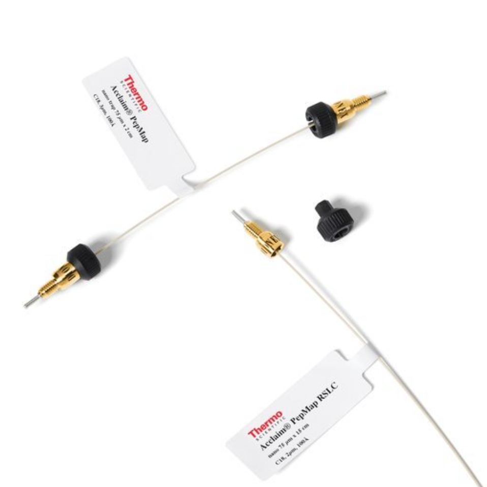 Thermo賽默飛Acclaim PepMap C18液相色譜柱使用Thermo賽默飛Acclaim PepMap C18液相色譜柱對胰蛋白酶肽、天然肽和合成肽進行高分辨率肽圖分析。這些色譜柱通常用于蛋白鑒定、生物標記物發現和系統生物學的 肽圖分析。載樣能力高,因此非常適合分析復雜蛋白組學樣品中的低豐度肽。大多數 C18 色譜柱都預先組裝了手擰接頭,可實現輕松安裝。另外也可提供傳統色譜柱。色譜柱接頭分析柱入口處配有標準的 1/32"接頭,nanoViper 色譜柱入口處配有 nanoViper 接頭,出口上有 10 mm 可用熔融石英,nanoViper FS 色譜柱入口處配有 nanoViper 接頭,出口處配有 45 mm 可用熔融石英,以便與 Peek 套管和 MicroTight 兩通更好地兼容。nanoViper 接頭的主要優點。使用方便,小號毛細管沒有套管,組裝時不需使用工具。不會因過緊而損壞色譜柱:可承受高達 1000 bar 的壓力,兼容第三方閥門和兩通。不會因連接不當而導致試驗失敗,對胰蛋白酶肽、天然肽和合成肽進行高分辨率肽圖分析,以及進行關于蛋白質鑒定、生物標記發現和系統生物學的 LC-MS/MS 肽圖分析。高載樣量用來分析經常存在于復雜蛋白質組學樣品中的低豐度肽,根據通量、靈敏度和樣品可用量,選擇色譜柱的長度和內徑。可選擇長度 50、150、250、500 mm,內徑 50、75、300 和 1000 µm的蛋白和多肽分離。為提高 MS 靈敏度,使抑制效應最小化分離效率。使用 手旋接頭輕松安裝,納米色譜柱還可預裝 Thermo Scientific Dionex nanoViper 手擰接頭,以零死體積的狀態連接至 1000 bar。無需工具,實現幾乎零死體積連接,承受壓力最高可達 1000 bar關于納米、毛細和微型 Acclaim PepMap 色譜柱,納米 (75 µm)、毛細 (300 µm) 和微型 (1000 µm) 色譜柱適用于蛋白和肽分析。通常,對樣品量有限制,較小內徑的色譜柱可以在樣品有限的情況下提高靈敏度。當納米 LC 色譜柱常用于蛋白組學時,毛細色譜柱和微型色譜柱的濃縮效應對代謝組學或推進 LC-MS 連接有益。164534賽默飛Acclaim PepMap C18液相色譜柱在各類針對肽和蛋白分析的化學作用中提供納米柱、毛細柱和微型柱。在借助質譜檢測功能進行液相色譜分離之前,可使用 PepMap Trap 色譜柱進行肽脫鹽和預富集。
