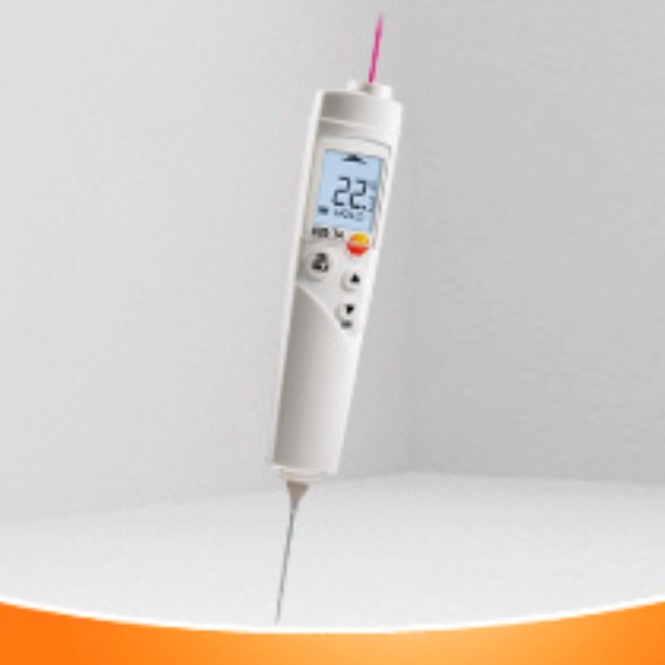 testo 826-T4紅外及刺入式溫度計,包括保護軟套,安裝支架,探頭保護帽,冷凍食品鉆及電池。