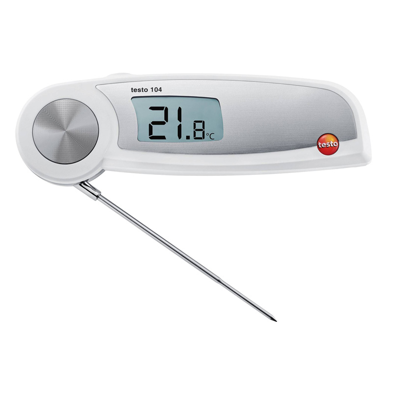 testo 104折疊式食品中心溫度計符合 HACCP 和 EN 13485法規要求,同時防塵防水設計,是食品行業理想的測量工具。