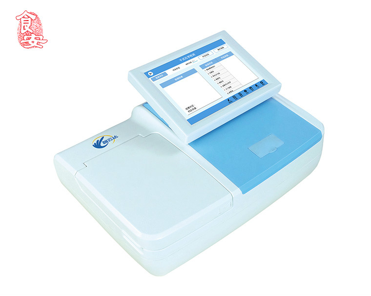 儀器預制了農藥殘留、甲醛、吊白塊、亞硝酸鹽、二氧化硫、雙氧水、蛋白質、余氯、色素、過氧化物酶、酸價、揮發性鹽基氮、碘含量、總酸、谷氨酸鈉等常見的數十種檢測項目的曲線。用戶通過大尺寸彩色觸摸屏,以及圖形化的操作界面引導,通過幾個簡單步驟即可輕松完成整個測試。儀器直接顯示被測物質含量,并通過與內置標準進行比對,自動判定結果是否合格。支持編輯及新建檢測方法,可完全滿足對精度有更高要求的客戶需要;支持以太網以及無線網絡連接,可以進行數據傳輸,達到實時監控和安全預警目的。